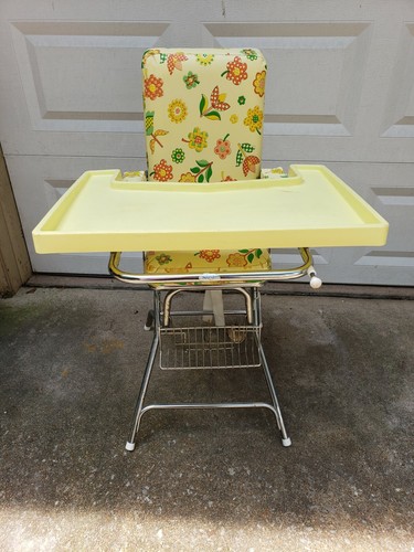 High Chair Strolee Vintage Antique Retro Baby Seat Chair Highchair Floral Yellow Ebay